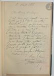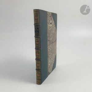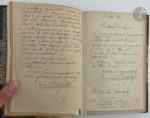 GASTYNE (Jules de) - FEUGÈRE (Henri). La Vie commune. Vaudeville en trois actes. Paris : Tresse & Stock, 1887. — In-18, demi-maroquin pastel à coins, filets dorés, dos à nerfs orné de motifs dorés et mosaïqués, tête dorée, non rogné, couverture conservée (reliure de l'époque). Édition originale de cette pièce représentée pour la première fois sur la scène du théâtre du Palais-Royal le 19 février 1887. Elle est l'œuvre de Jules Benoît, sous le pseudonyme de Jules de Gastyne (1848-1920) et de Henri Feugère. Très bel exemplaire, enrichi de 6 L.A.S. de Henri Feugère adressées à M. Dehaynin. Dos légèrement passé. Provenance : H. Vigneron, avec ex-libris.