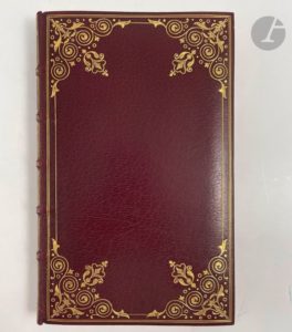 MUSSET (Alfred de). Contes d'Espagne et d'Italie. Paris : A. Levavasseur, Urbain Canel, 1830. — In-8, maroquin bordeaux, filets dorés et fer angulaire doré en encadrement sur les plats, dos à nerfs orné, doublures de maroquin vert foncé bordé d'un filet doré, gardes de soie rouge, tranches dorées sur témoins, couverture conservée (Huser). Édition originale recherchée du premier recueil poétique d'Alfred de Musset. Superbe exemplaire en reliure doublée de Huser, comprenant les feuillets des pages 21-22, 75 à 78 et 207-208 cartonnés. Couverture doublée et quelques minimes rousseurs éparses sans gravité.