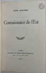CLAUDEL (Paul). Connaissance de l'Est. Paris : Société du Mercure de France, 1907. — In-12, demi-maroquin vert foncé à coins à la Bradel, dos lisse, tête dorée, non rogné, couverture et dos conservés (Ch. Septier). Seconde édition augmentée, après celle de 1900, de ces impressions d'Extrême-Orient de Paul Claudel qui passa plusieurs années en Chine en tant que consul de France successivement à Shanghaï, Fou-Tchéou, Pékin et Tien-Tsin. L'ouvrage se compose d'essais indépendants les uns des autres, tantôt décrivant une pagode, une montagne, etc. tantôt une fête locale, une atmosphère dans un jardin, le tout permettant à l'auteur de faire découvrir au lecteur l'âme chinoise et plus généralement celle de l'homme et de son destin. Un des 12 exemplaires numérotés sur papier de Hollande, enrichi en tête d'une carte de visite de M. et Mme Paul Claudel. Très bel exemplaire.