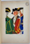 DIDEROT (Denis). Le Neveu de Rameau. Paris : Le Livre français, H. Piazza, 1925. — In-8, chagrin gris, fer à motif de feuillage doré aux angles sur les plats, dos lisse orné, tête dorée, non rogné, couverture et dos conservés (René Kieffer). Édition de luxe tirée à 4500 exemplaires. EXEMPLAIRE UNIQUE, un des 500 sur japon, enrichi de 20 AQUARELLES ORIGINALES HORS TEXTE SIGNÉES LARRICQ, réalisées sur papier vergé. D'après une fiche ancienne laissée dans l'exemplaire, il s'agit de l'exemplaire personnel de l'artiste. Salissures à la reliure, quelques frottements d'usage, craquelures à la charnière du premier plat. Provenance : Ex-libris A. J.