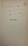 FARGUE (Léon-Paul). Espaces. Épaisseurs. Vulturne. Paris : Nouvelle Revue Française, [1929]. — In-12, broché. Édition collective en partie originale. Exemplaire du service de presse, enrichi d'un ENVOI AUTOGRAPHE SIGNÉ DE L'AUTEUR À HENRI DE RÉGNIER (1864-1936) : « à Henri de Régnier // avec les amitiés de // Léon-Paul Fargue. » Exemplaire très bien conservé.