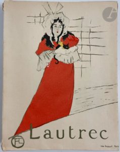 JOYANT (Maurice). Henri de Toulouse-Lautrec. 1864-1901. Dessins. Estampes. Affiches. Paris : H. Floury, 1927. — In-8, broché, couverture rempliée. Édition originale du premier des deux volumes parus de cet ouvrage de référence sur Toulouse-Lautrec, comprenant de nombreuses reproductions en noir dans le texte et à pleine page ainsi que plusieurs hors-textes dont certains en couleurs. Ce premier volume est consacré aux dessins, estampes et affiches, le second, manquant, est consacré aux peintures. Exemplaire du tirage courant. Déchirures aux mors, sinon exemplaire très bien conservé.