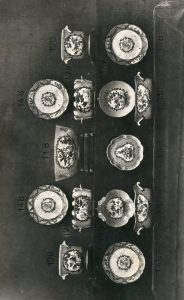 Objets d'art. Catalogue de vente. Commissaire-priseur : Charles Pillet. Expert : Charles Mannheim. P., 1870, 8°, 327 p., 4°, plein chagrin noir, dos titré à 5 nerfs, tranches dorées, coupes filetées, triple filet d'encadrement doré aux contreplats, cachet de la bibliothèque de San Donato (qq. frottements, piqûres éparses). Catalogue de luxe comportant 1965 lots de meubles, céramiques, bronzes, armes et autres magnifiques objets d'art, illustré de 16 photographies (procédé Woodbury). Cette superbe collection avait été rassemblée à la villa Donato près de Florence par le richissime comte russe Nicolas Demidoff puis par son fils le prince Anatole Demidoff.