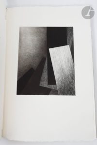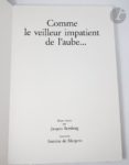 *MARGERIE (Antoine de). Comme le veilleur impatient de l'aube… S.l. : [imprimerie E. Ruckstuhl à Lausanne, 1987]. — Grand in-folio, cartonnage d'édition en toile grise, titre imprimé sur le premier plat, non rogné, étui. Édition très rare de ce recueil de vingt gravures originales en taille-douce à pleine page du peintre Antoine de MARGERIE (1941-2005), illustrant chacune un texte ancien ou moderne choisi par Jacques Bemberg. Tirage strictement limité à 50 exemplaires hors commerce sur papier vélin Johannot, numérotés et signés par l'artiste à la justification. Exemplaire très bien conservé.
