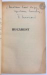 MORAND (Paul). Bucarest. Paris : Librairie Plon, [1935]. — In-12, demi-chagrin rouge, dos à nerfs, tête dorée, non rogné, couverture et dos conservés (P. Goy et C. Vilaine). Édition originale illustrée de 2 cartes dont l'une dépliante. Exemplaire sur papier d'édition, enrichi d'un envoi autographe signé de l'auteur adressé à Madame Paul Dupuy. Dos légèrement passé. Mouillure claire à l'angle inférieur des feuillets. Provenance : Madame Paul Dupuy, avec envoi de l'auteur. - Jean-Berenger de Nattes, avec ex-libris.