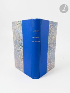 PERGAUD (Louis). La Guerre des boutons. Roman de ma douzième année. Paris : Mercure de France, 1912. — In-12, demi-percaline bleue à la bradel, dos lisse, non rogné, couverture et dos conservés (reliure de l'époque). Édition originale de ce grand classique de la littérature française. Exemplaire de première émission, sur papier d'édition, numéroté à la presse. Il est complet de l'extrait du catalogue de l'éditeur relié à la fin.