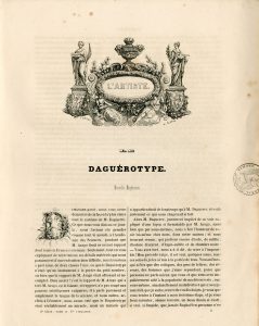 Daguerréotype. "L'Artiste". Journal de la Littérature et des Beaux-Arts. 2e série - tome 4. P., 1839, 4 f. 4° (titre-front., p. de titre et 5 colonnes sur 3 f.). Premier article paru sur l'invention du "Daguerréotype" extrait de la revue "L'Artiste" en 1839. Daguerre découvre ce procédé en 1835. Après des années de perfectionnement, il présente sa découverte à l'Académie des Sciences le 9 janvier 1839. Le brevet de Daguerre est acquis par le gouvernement français, ce qui permet à l'Académie, en publiant les détails du procédé le 19 août 1839, d'en doter libéralement le monde entier./ Catalogue n° 14 Maggs Bros. P.-Londres, 1939, 8°, br. Ce catalogue de vente contient une section "Les Débuts de la photographie" (pp. 97-110). Sauf erreur, il s'agit du premier catalogue de vente de photographies, publié à l'occasion du centenaire du daguerréotype./ Ens. 2 vol.