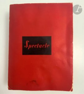 PRÉVERT (Jacques). Spectacles. Paris : NRF, Le Point du jour, [1951]. — In-8, broché, couverture rempliée. Édition originale. Un des 105 exemplaires numérotés sur vélin de Hollande Van Gelder, second grand papier après 40 exemplaires sur Madagascar. Bon exemplaire, entièrement non coupé. Légères usures sur les bords des couverture, mouillure claire sans gravité au verso du premier plat de couverture.