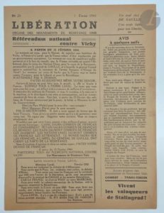 [RÉSISTANCE]. Libération. Organe des mouvements de résistance unis. S.l. : Libération, 1 …