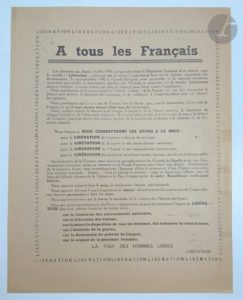 [RÉSISTANCE]. À tous les Français. Tract 275 x 213, imprimé au recto. Ce rare tract fut …