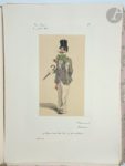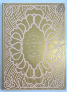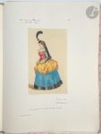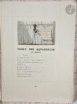 SAND (Maurice). George Sand et le théâtre de Nohant. Paris : Les Cent Une, 1930. — In-folio, en feuilles, sous chemise cartonnée et gaufrée à rabats de l'éditeur, étui à lacets. Superbe album tiré à 111 exemplaires sur vélin de Rives, illustré de vignettes d'Yvonne Préveraud et de 36 aquarelles de Maurice Sand, dont 33 hors texte contrecollées, reproduites par Daniel Jacomet. Exemplaire spécialement imprimé pour madame Béard du Dézert. Exemplaire très bien conservé malgré des usures à l'étui et une déchirure sans manque à deux rabats.