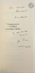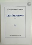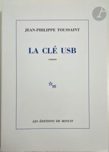 TOUSSAINT (Jean-Philippe). Ensemble de 5 ouvrages : - MADE IN CHINA. Paris : Éditions de Minuit, [2017]. — In-12, broché. Édition originale. Un des 67 exemplaires numérotés sur vergé des papeteries de Vizille, seul tirage sur grand papier. - LA CLÉ USB. Paris : Éditions de Minuit, [2019]. — In-12, broché. Édition originale. Un des 92 exemplaires numérotés sur vergé des Papeteries Schleipen, seul tirage sur grand papier. - LES ÉMOTIONS. Paris : Éditions de Minuit, [2020]. — In-12, broché. Édition originale. Un des 84 exemplaires numérotés sur vergé des Papeteries Schleipen, seul tirage sur grand papier. - LA DISPARITION DU PAYSAGE. Paris : Éditions de Minuit, [2021]. — In-12, broché. Édition originale achevée d'imprimer le 2 novembre 2020. Un des 73 exemplaires numérotés sur vergé des Papeteries Schleipen, seul tirage sur grand papier. - L'INSTANT PRÉCIS OÙ MONET ENTRE DANS L'ATELIER. Paris : Éditions de Minuit, [2022]. — In-12, broché. Édition originale. Un des 53 exemplaires numérotés sur vergé des Papeteries Schleipen, seul tirage sur grand papier, celui-ci enrichi d'un envoi autographe signé de l'auteur adressé à Laurent Bernard. Exemplaires parfaitement conservés, en grande partie non coupés.