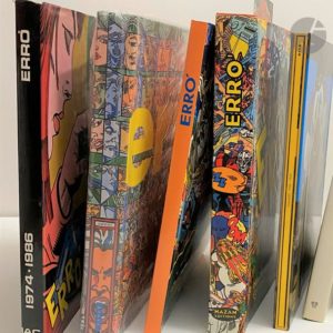 [DOCUMENTATION]. Ensemble de 17 ouvrages : - ERRO, 1974-1986, catalogue raisonné, l’incitation à a création, Fernand Hazan, 1986. - ERRO, 1987-2006, catalogue général, édition Hazan, 2007. Daté et signé par l’artiste. - ERRO, 1984-1998, 3rd general catalogue, The Erro museum, 1998. Dédicacé, daté et signé par l’artiste. - ERRO, édition Hazan, 1998. Dédicacé, daté et signé par l’artiste. - ERRO, catalogo generale, pre-art, 1976. Dédicacé, daté et signé par l’artiste. - ERRO, dessins/drawings, Musée d’art moderne Saint-Etienne, 2010. Dédicacé, daté et signé par l’artiste. - ERRO, collages, 1958-1988, Berggruen & cie, 1992. Lithographie réalisée spécialement pour ce catalogue par l’artiste. Daté et signé par l’artiste. - ERRO, collages, 1958-1964, de Paepe Editions. Daté et signé par l’artiste. Dans emboitage. - ERRO, chronologie, l’art et la vie, Danielle Kvaran, Listasafn Reykjavikur. Dédicacé, daté et signé par l’artiste. Dans emboitage. - ERRO collection, retrospective, Listasafn Reykjavikur, 2001. Dédicacé, daté et signé par l’artiste. - ERRO, retrospective 27 octobre 1999-2 janvier 2000, galerie nationale du jeu de Paume. - ERRO, tableaux chinois, galleria arte Borgognan Milano. - ERRO, super Erro, œuvres de 1961 à 2011, galerie Bessaiche Lartigue, 2012. - ERRO, even the walls, for Robert Crumb, Formentera, 1973. Dédicacé, daté et signé par l’artiste. - ERRO, Gudmundur Gudmundsson, Georges Fall éditeur, 1968. - ERRO, Jean-Jacques Lebel, 1955-2011. - ERRO, Pigeons, 19 collages, la planète confuse, édition de la Différence, 1978.