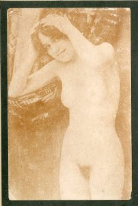 Nu (modèle). Photographie argentique, contrecollée sur carton et entourée d’un large trait noir (dim. photo : 13 × 9,5 cm ; support : 34 × 22,5 cm). Signée par Degas et suivie de deux lignes autographes contresignées : « J’ai admiré un peu en aveugle, / Mr Lécuyer ne sait pas que c’est vrai / Degas » (deuxième signature tachée). Les spécialistes datent les photographies de Degas de la fin du 19e s. (1895-1896) et du tout début du 20e, malgré le fait qu’il voit de moins en moins. Le texte autographe est émouvant à cet égard. Cette photographie a fait partie des collections de la Galerie Vollard (cachet au verso). Elle y fut acquise par le célèbre collectionneur tchèque Vincenc Kramář (1877-1960), vers les années 1920-1925 (cachet du collectionneur et signature autographe au verso), qui la cèda à l’historien tchèque de l’art Václav Vilém Štech (1885-1974). On joint une lettre originale tapuscrite signée en tchèque de Kramář à Štech à ce sujet, datée du 17 nov. 1958. Cette photographie ne semble pas connue. En tout cas, elle n’est pas répertoriée dans le catalogue de l’exposition Degas à la Bibliothèque nationale de France : Malcolm Daniel, Eugenia Parry, Théodore Reff, avec la coll. de Sylvie Aubenas, « Edgard Degas photographe ». Paris, BnF, 1999.