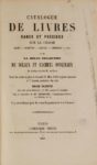 21- [CATALOGUE DE VENTE]. - Catalogue de livres rares et précieux sur la chasse. Aldes. - Elzévirs. - Poètes. - Conteurs, etc., et de la belle collection de sceaux et cachets originaux du cabinet de feu M. de Koch, dont la vente se fera le lundi 19 mai 1862 et jour suivant à 7 précises du soir (...). Paris, Tross, 1862, in-8, 349 numéros décrits, demi- maroquin rouge, dos lisse orné de filets dorés (Ateliers Laurenchet). Absent de Thiébaud.
