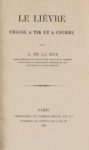 51- LA RÜE (Adolphe de). Le Lièvre. Chasse à tir et à courre. Paris, Firmin-Didot, 1876, …