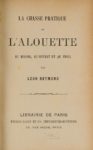 70- REYMOND (Léon). La Chasse pratique de l'alouette, au miroir, au sifflet, et au fusil. Paris, …