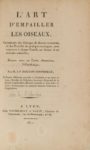 80- [TAXIDERMIE] - MOUTON-FONTENILLE DE LA CLOTTE (Jacques-Marie-Philippe). L'Art d'empailler les oiseaux, contenant des principes de théorie nouveaux, et des procédés de pratique avantageux pour conserver à chaque famille ses formes et ses attitudes naturelles ; faisant suite au Traité élémentaire d'ornithologie. Lyon, Yvernault et Cabin [Imprimerie de J.-B. Kindelem], 1811, in-8, avec 5 planches dépliantes hors texte (en noir), demi-veau brun granité, dos lisse orné de filets dorés, pièce de titre cerise, coins en vélin (reliure moderne). Rousseurs. Troisième édition. C'est la plus complète et la plus rare.