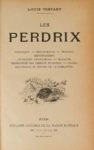 83- TESTART (Louis). Les Perdrix. Historique. - Ornithologie. - Élevage. - Repeuplement. - Incubation artificielle. - Maladies. - Destruction des animaux nuisibles. - Chasse. - Braconnage et moyens de le combattre. Paris, Librairie agricole de la Maison rustique, s.d. (1903), in-12, demi-basane rouge, dos lisse orné de filets dorés (reliure de l'époque). Unique édition. Thiébaud, 885.