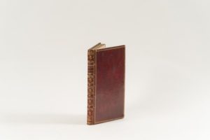 99- [ATLAS] - BERTHAULT. Archevêché de Paris, divisé en ses 3 archidiaconés, en ses 2 archiprêtrés, et subdivisé en ses 7 doyennés ruraux, dédié au clergé du diocèse. Paris, chez l'auteur, s.d. (1764), in-12, titre gravé à double page (avec une légère déchirure), avec 16 cartes en couleurs à double page dans le texte, maroquin vieux-rouge, dos à nerfs cloisonné et fleuronné, encadrement de triple filet doré sur les plats, simple filet doré sur les coupes, tranches dorées, guirlande dorée en encadrement sur les contreplats, gardes de papier étoilé doré (reliure de l'époque). Très joli petit atlas orné de 16 cartes rehaussées en couleurs. Bel exemplaire.
