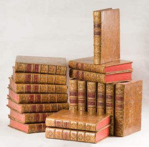 107- [BERTRAND (Jean-Élie)]. Descriptions des arts et métiers faites ou approuvées par Messieurs de l'Académie royale des sciences de Paris. Avec figures en taille-douce. Nouvelle édition. Publiée avec des observations, & augmentée de tout ce qui a été écrit de mieux sur ces matières, en Allemagne, en Angleterre, en Suisse, en Italie. Neuchâtel, Imprimerie de la Société typographique, 1771 - [1783], 18 (sur 19) forts vol. in-4, veau fauve marbré, dos à nerfs cloisonnés et fleuronnés, pièces de titre et de tomaison cerise, double filet doré sur les coupes, tranches rouges (reliure de l'époque). Accrocs à certaines coiffes, coins abîmés, coiffes frottées, petites galeries de vers au volume III, un mors supérieur du vol. XVI fendu. Manque le tome IV. Regroupe 479 planches sur cuivre. Seconde édition, due à l'habile activité de contrefacteur de la célèbre Société typographique de Neuchâtel. Détail des volumes et des planches sur demande.