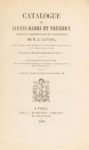 113bis- [BIBLIOGRAPHIE - [TAYLOR]] - Catalogue de livres rares et précieux composant la première partie de la bibliothèque de M. J. Taylor, dont la vente se fera le mardi 17 octobre 1848 et jours suivants (). Paris, J. Techener, 1848, in-8, broché. Petits manques de papier au dos. 2636 numéros décrits