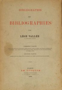 123- [BIBLIOGRAPHIE] - VALLÉE (Léon). Bibliographie des bibliographies. Paris, Em. Terquem, …