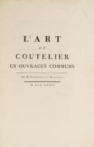 138- FOUGEROUX DE BONDAROY (Auguste-Denis). L'Art du coutelier en ouvrages communs. S.l. [Paris], …