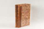 155- [HERALDIQUE] - REVEREND DU MESNIL (Edmond). Armorial historique de Bresse, Bugey, Dombes, pays de Gex, Valroney et Franc-Lyonnais, d'après les travaux de Guichenon, d'Hozier, Aubret, d'Assier, Steiger, Baux, Guigue, Albrier, Arcelin. Lyon, Aimé Vingtrinier, 1872-1874, 2 vol. in-4, demi-chagrin brun, dos à nerfs orné de filets dorés, couvertures conservées (reliure de l'époque). Coiffes absentes, dos et mors très frottés, mors fendus. Un feuillet de garde du tome I détaché. Quelques rousseurs. Blasons dans le texte. Cachet, étiquette de bibliothèque et ex-libris Amadeo Delaunet. Ex-libris Marquis de Pontecroix.