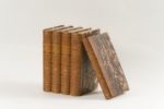 170- LAS CASES (Emmanuel-Dieudonné de). Mémorial de Sainte-Hélène, journal où se trouve consigné, jour par jour, ce qu'a dit et fait Napoléon pendant dix-huit mois. Nouvelle édition, soigneusement revue par l'auteur. Paris, H.-L. Delloye [Imprimerie Le Normant], 1840, 9 tomes en 5 vol. in-12, demi-chagrin fauve, dos lisses ornés de filets dorés, double filet à froid sur les plats, tranches mouchetées (rel. un peu postérieure). Abondantes rousseurs. Avant-dernière édition publiée du vivant du mémorialiste (qui disparut le 15 mai 1842). Chiffre P.L.M. poussé en queue des dos.