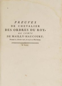 175- [MAISON DE MHERALDIQUE - AILLY] - Preuves de chevalier des Ordres du Roy, du comte de …