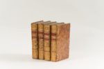 201- [ORDRES RELIGIEUX] - Histoire du clergé séculier et régulier, des congrégations de chanoines & de clercs, & des ordres religieux de l'un & de l'autre sexe, qui ont été établis jusqu'à présent. Nouvelle édition tirée du R.P. Bonanni, de Mr. Herma, de Scoonbeek, du R. P. Hélyot, & d'autres qui ont écrit sur ce sujet, avec plusieurs augmentations. Amsterdam, Pierre Brunel, 1716, 4 vol. petits in-8, basane fauve marbrée, dos à nerfs cloisonnés et fleuronnés, pièces de titre et de tomaison, simple filet doré sur les coupes, tranches marbrées (reliure de l'époque). Infimes trous de vers à certains mors et au dos du tome 3. Édition originale. Iconographie très complète des costumes masculins et féminins des personnes consacrées avant le début de la sécularisation : 442 figures en tout, dont deux (au début et à la fin de la série) présentent les codes des traits qui représentent les couleurs des habits. Très bon exemplaire.