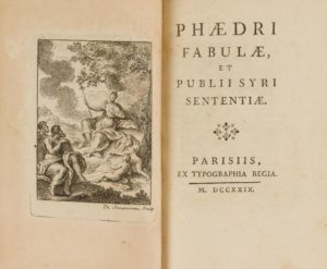 206- PHEDRE. Phaedri fabulae, et Publii Syri sententiae. Paris, Imprimerie royale, 1729, in-18 (12 …