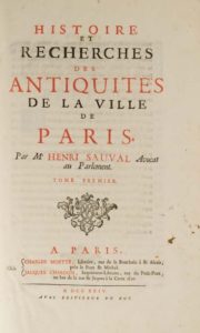 216- SAUVAL (Henri). Histoire et recherches des Antiquités de la ville de Paris. A Paris, chez …