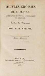 219- SERVAN (Michel-Joseph-Antoine). OEuvres choisies. Partie du barreau. Limoges, Chez Jean-Bapt. …