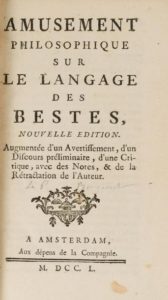 223- [TIPHAIGNE DE LA ROCHE (Charles-François)]. L'Amour dévoilé, ou Le Systême des simpathistes, où l'on explique l'origine de l'amour, des inclinations, des simpathies, des aversions, des antipathies, &c. S.l., 1749, in-12, veau fauve marbré, dos à nerfs orné de filets, guirlandes et fleurons dorés, pièce de titre, encadrement de simple filet à froid sur les plats, tranches rouges (reliure de l'époque). Petit manque à la coiffe inférieure. Édition originale très rare du tout premier ouvrage de Tiphaigne de La Roche (1722-1774). RELIÉ AVEC : [BOUGEANT (Guillaume-Hyacinthe) :] Amusement philosophique sur le langage des bestes, nouvelle édition. Augmentée d'un avertissement, d'un discours préliminaire, d'une critique, avec des notes, & de la rétractation de l'auteur. Amsterdam [= en France], aux dépens de la Compagnie, 1750, Troisième édition.