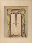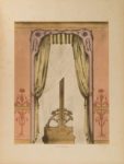 224- TUGOT (René). Bibliothèque de l'ameublement. Tentures d'art nouveau. Dourdan, Émile Thézard fils, s.d. (vers 1900), in-folio, en feuilles sous chemise demi-toile chagrinée verte à lacets, dos lisse muet, plats de cartonnage fantaisie, titre poussé sur le plat supérieur (reliure de l'éditeur). Rousseurs, coins abîmés. Très rare. 25 planches en couleurs.
