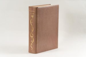 228- AYME (Marcel). La Vouivre. Illustré et gravé sur bois par Jean Chièze. Paris, Pierre Bricage, 1950, in-4, avec 56 bois gravés dans le texte, maroquin châtaigne, dos lisse orné d'un serpentin en long, tranches dorées, encadrement de simple filet doré sur les contreplats, premières gardes doublées de tabis gris, gardes volantes de papier marbré, la première doublée de tissu doré, couverture et dos conservés, le tout sous chemise à rabats et emboîtage demi-maroquin (A. Székely). Magnifique édition illustrée d'un des chefs-d'oeuvre de Marcel Aymé, originellement paru en 1943 chez Gallimard. Exemplaire unique imprimé spécialement pour l'éditeur, avec feuillet notifiant "Exemplaire réservé à Pierre Bricage". En sus de l'iconographie commune, il est enrichi : 1. D'une suite des 56 gravures sur papier légèrement teinté. 2. De quatre dessins originaux de Jean Chièze, signés, avec envois et sous serpentes, dont un en couleurs, reliés au début de l'ouvrage. 3. D'un tirage volant du bois final, enrichi d'un envoi de Jean Chièze "pour Pierre et Berthe Bricage", en date du 17 octobre 1950. Très bel exemplaire. On joint : Une L.A.S. de Marcel Aymé à Pierre Bricage, du 21 février 1951, et revenant, avec retard, sur cette publication illustrée de La Vouivre ("Je suis confus de répondre si tard à votre envoi de "La Vouivre" qui m'a fait un si grand plaisir ...").