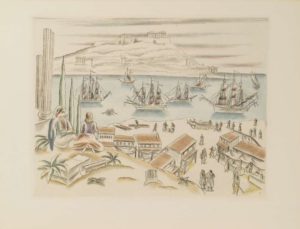 233- BYRON (Lord). Le Pélerinage de Childe-Harold. Paris. Trémois, 1930. in-4 en feuilles, couverture éditeur de papier velours orange illustrée, sous chemise cartonnée a? lacets légèrement empoussiérée, un mors fendu. Édition illustrée de 16 gravures et dessins en couleurs par Louis Touchagues, dont 8 hors-textes sous passe-partout. Notre exemplaire est enrichi de 5 planches d'études en couleurs. Tirage à 220 exemplaires, celui-ci 1 des 169 numérotés sur vélin d'Arches. Gardes et quelques marges insolées.