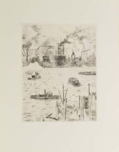 239- FARRERE (Claude). De Londres a? Venise par New York. Paris, Kieffer, 1949, in-4, en feuilles, sous chemise et étui. Édition originale illustrée de 18 eaux-fortes originales de Valdo Barbey. Tirage à 538 exemplaires, celui-ci est 1/450 exemplaires numérotés sur Rives.