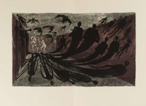 243- GARNUNG (Francis). Le Meneur d'ombres. Les Impénitents, 1961, in-4, en feuilles, sous chemise et étui de l'éditeur. Édition originale illustrée d'un frontispice de Max Ernst sur fond jaune et 8 eaux-fortes en couleurs de Lars Bo. Tirage à 150 exemplaires, tous sur Vélin de Rives.