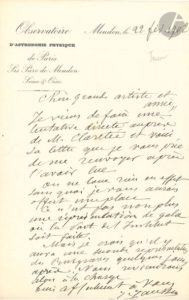 Jules JANSSEN (1824-1907) astronome. L.A.S., Meudon 22 février 1902, à une « chère grande …