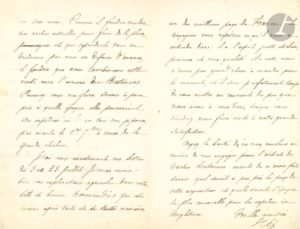 Henri d’Orléans, duc d’AUMALE (1822-1897) fils de Louis-Philippe ; général, il se distingua en Algérie contre Abd-el-Kader. L.A.S., Twickenham, 1er août 1856, à un ami ; 3 pages in-8. Il remercie pour l’envoi de fromages, puis parle des « vaches Bretonnes ; ma femme voudrait décidément en avoir huit avec leur taureau ; elle a pensé que personne ne pouvait mieux que vous composer et expédier ce petit troupeau » ; il leur faudra d’abord vendre leurs vaches. « Je vous envie bien vos explorations agricoles dans votre belle et bonne Normandie qui est encore après tout et de toutes manières un des meilleurs pays de France »…