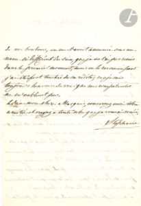 Stéphanie de BEAUHARNAIS, princesse de BADE (1789-1860) petite-cousine de Joséphine, elle épousa le prince de Bade ; elle serait la mère de Gaspard Hauser. L.A.S. « Stéphanie », Düsseldorf 23 décembre [1852 ?], à un « cher Marquis » ; 1 page et demie in-8 à son chiffre couronné. Elle est très touchée qu’il ne l’ait pas oubliée malgré tous les événements que vit le marquis, et le remercie de l’envoi de bonbons… Elle se réjouit du retour de l’Empire : « Vous devez être satisfait de tout ce qui se passe, nous sommes heureux nous, de l’Ancien Empire, de le voir sortir de ses ruines, jeune, brillant, et j’espère, bien fondé, je fais des vœux pour sa durée et pour tout ce qui peut contribuer au bonheur de notre cher Empereur »…