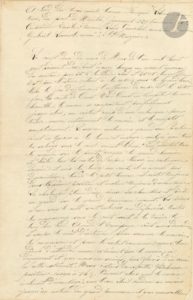 MARINE. 2 manuscrits, Saint-Nazaire 22 et 24 mars 1878 ; 6 pages et demie in-fol. Rapports manuscrits sur le naufrage du navire Liberté-Pour-Tous, suite à une tempête exceptionnelle les 22 et 24 mars 1878. Ils sont destinés à l’armateur Gabriel Lauriol et aux assureurs, et relatent les évènements dramatiques survenus « à bord du trois-mâts barque français Liberté-Pour-Tous, du Port de Nantes », pris dans un cyclone tropical au large de l’Afrique du Sud dans l’Océan Indien... Ces deux rapports dressent le bilan des dégâts causés au navire et à sa marchandise chargée à Bimlipatam (Inde)…