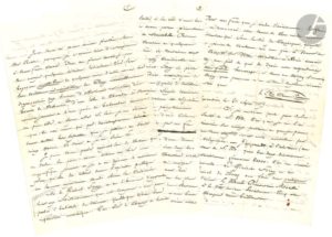 Bataille de MONTEBELLO. 2 L.A.S., Alexandrie 21 et 25 mai 1859, [au comte de Lezay-Marnesia] ; L.A.S., 8 et 12 pages in-8. Aynard de CLERMONT-TONNERRE (1827-1884). Longue lettre du capitaine et futur général, officier d’ordonnance de Napoléon III pendant la campagne d’Italie. « C’est sur le champ de bataille de Montebello où Lannes, il y a cinquante-neuf ans, luttait victorieusement contre des forces doubles des siennes que 6500 Français ont arrêté 15 000 Autrichiens. Le canon a grondé de midi à 6h du soir. Lorsque sa grande voix a cessé de se faire entendre, l’ennemi était en pleine retraite. […] Des troupes, qui, pour la plupart, n’avaient point encore vu le feu, se sont battues à la bayonnette comme de vieux soldats. […] Plaignez ceux qui, comme moi, vous envoient pacifiquement du fond de leur cabinet le résumé des impressions des acteurs du drame. Comparses ridicules qui se croient en droit de vouloir un rôle et peuvent savoir la pièce, parce qu’ils l’ont entendu lire »… Charles d’ARGUESSE (1823-1901). Longue lettre de cet officier d’ordonnance de Napoléon III, relatant le voyage à Gênes et Alexandrie, la position des divers corps d’armée et la magnifique bataille du 20 mai 1859 : ce combat sous le commandement du général Forey s’acheva par « une complète déroute » des Autrichiens, quatre fois plus nombreux. « Je vous citerai seulement le fait d’un soldat qui a tué un général autrichien à la baïonnette, après que celui-ci l’a eu blessé à l’épaule d’un coup de pistolet et que l’Emp. a décoré pour ce fait »…