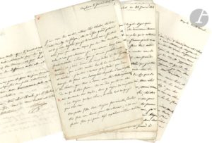 NAPLES. Athénaïs Antoine de Rocquemont, baronne d’ARLINCOURT, épouse du général Charle-Marie Prévost d’Arlincourt (1787-1864), et dame d’honneur de la Reine Caroline. 75 L.A.S. « Athénaïs », Naples 1811-1815, à son époux le baron d’Arlincourt ; 194 pages in-8 ou in-4, tranches dorées, filigranes à l’effigie de Napoléon, quelques adresses. On joint : 12 L.A.S. au baron, écrites de France durant son voyage à Bordeaux (1816), et 2 L.A.S. à sa mère (Naples, 1808-1809) ; plus une belle L.A.S. du baron d’Arlincourt à son épouse après la trahison de Murat Très intéressante correspondance sur la Cour de Naples et le règne de Muratet sur l’éruption du Vésuve…