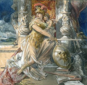 Sans titres [Scènes mythologiques]. Ensemble de 3 dessins originaux à l'aquarelle, au crayon gras et à la gouache sur papier. Tampon "C.E. Doepler" au verso. Dim. support : (3 x) 32 x 35,5 cm ; sujet : (3 x) 25 x 25,5 cm. Bel ensemble.