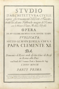 ---1702- 1711.--- LIBRO: ---(ARQUITECTURA)---. ---ROSSI, DOMENICO DE:--- ---STUDIO D´ARCHITETTURA CIVILE SOPRA GLI ORNAMENTI DI PORTE FINESTRE, TRATTI DA ALCUNE FABBRICHE INSIGNI DI ROMA.--- Roma: s. imp., 1702 y 1711. Dos vol. gran folio. I: 142...