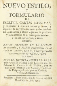 ---1763---. LIBRO: ---(EPÍSTOLAS-POSTAS)---. ---NUEVO ESTILO Y FORMULARIO DE ESCRIVIR CARTAS MISSIVAS, (...) con la noticia general para escrivir desde Madrid a los lugares mas señalados de comercio de españa, por los dias de la semana: con...